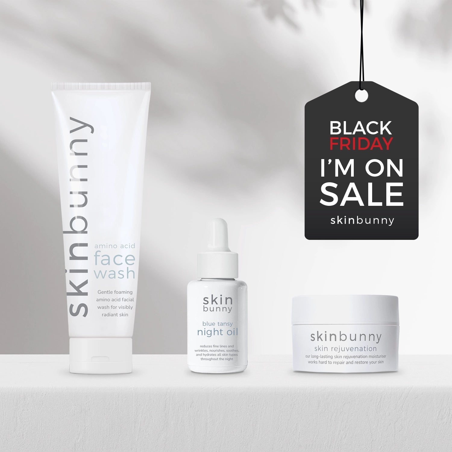 Introducing Skinbunny's amazing new evening skincare routine with 3 essential products that will make you look and feel so good you won't want to be without them.